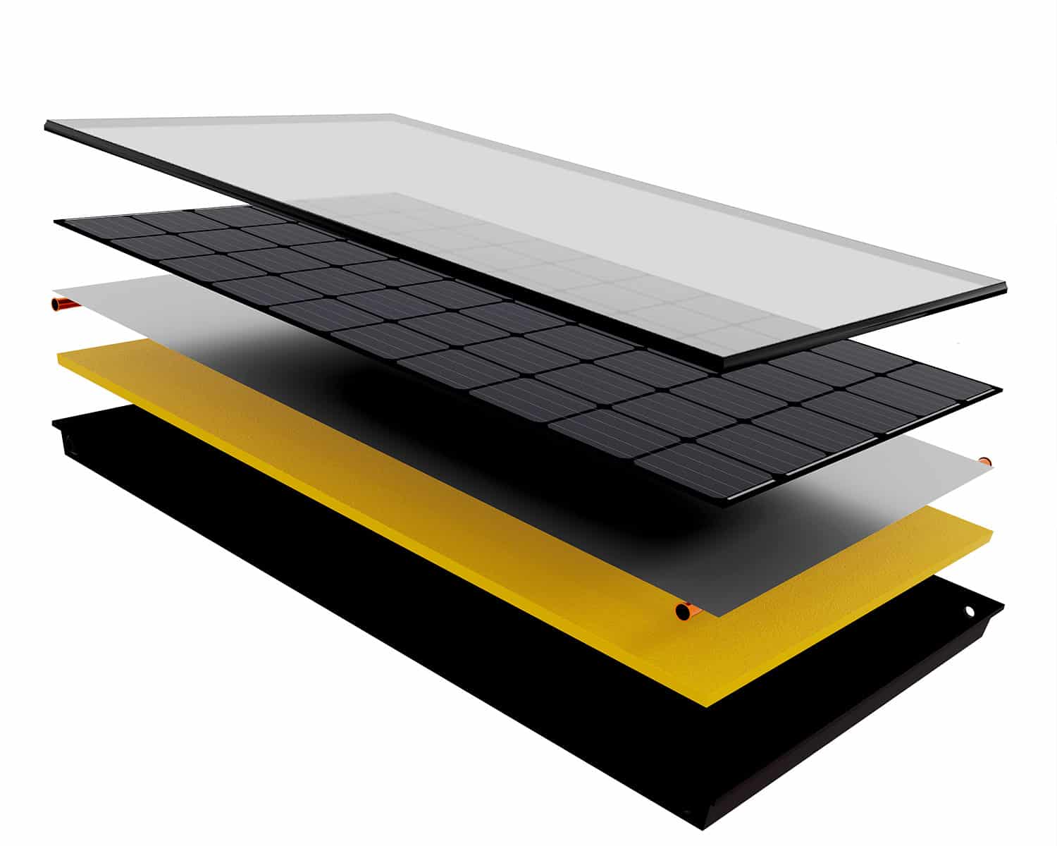 La tecnología aHTech® combina células fotovoltaicas y un colector térmico en un solo panel, optimizando la generación de electricidad y calor a partir de la energía solar. Su diseño de capas reduce al mínimo las pérdidas térmicas, mientras que la refrigeración de las células fotovoltaicas incrementa su rendimiento, lo que permite una mayor eficiencia energética en comparación con los paneles convencionales.