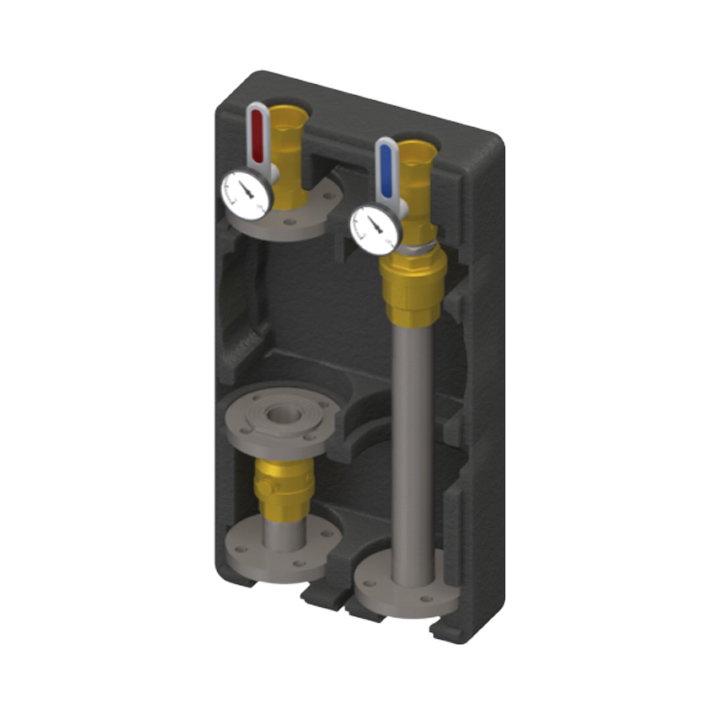 El grupo no mezclado KOMPAT DN 25 – 1″ KS-125 es adecuado para circuitos de alta temperatura (radiadores, fan coils y cargas de caldera). Se suministra con salida a la derecha.